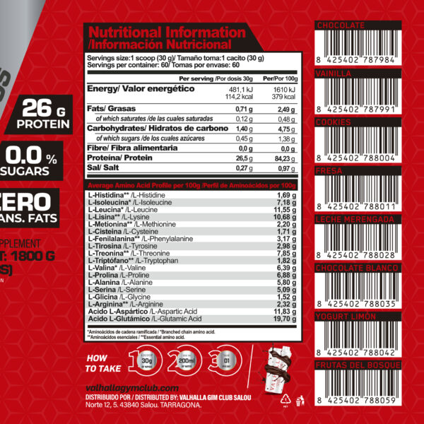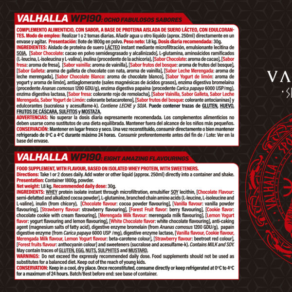 Valhalla WPI90 es un aislado de proteína de suero diseñado para quienes buscan resultados reales sin azúcares ni rellenos innecesarios. Con una concentración del 90% de proteína, es la elección perfecta para construir músculo, acelerar la recuperación y mantener una nutrición limpia.